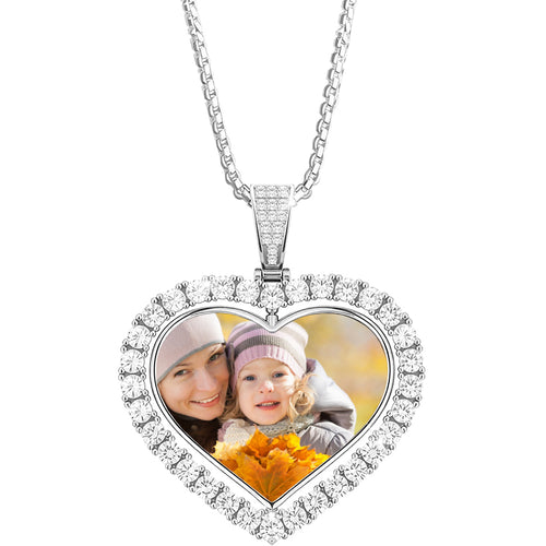 Baguette 925 Sterling Silver Custom Locket Photo Pendant Necklace | Remembrance Memorial Personalized Diamond Picture Necklace Gift -